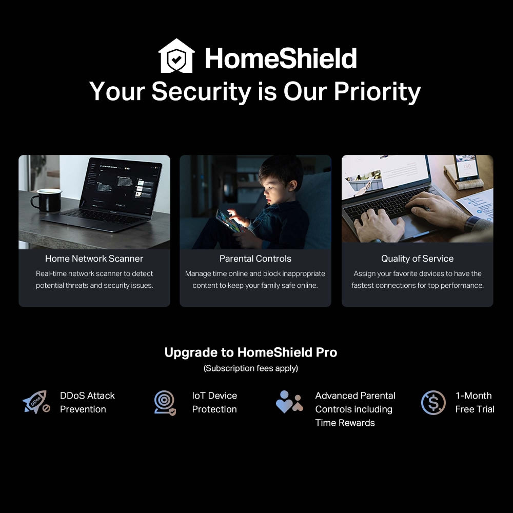 | Επιπρόσθετα | Powerful WiFi 7 performanceBlazing-Fast 9214 Mbps Tri-Band WiFi 7Multi-Link Operation (MLO)1and#215; 2.5 Gbps WAN port and 4and#215; 2.5 Gbps LAN portsMaximized Coverage:Proprietary WiFi optimization and optimally positioned antennas along with Beamforming deliver more capacity stronger and more reliable connections and less interference.EasyMesh-Compatible:Works with EasyMesh routers and range extenders to form seamless whole home Mesh WiFi preventing drops and lag when moving between signals.Easy Setup and Use:Network management has never been easier with the Tether app.TP-Link HomeShield:Enhanced security defends against the latest cyber threats. |
