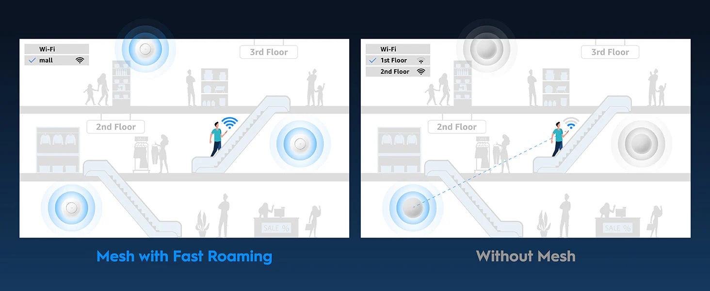 | Επιπρόσθετα | A wall/ceiling-mounted WiFi 6 AP 2.5G ports1.3 GHz Dual-Core CPU512 MB RAM4-Stream Dual-Band Wi-Fi 62402 Mbps + 574 Mbps Wi-Fi1and#215; Shielded 2.5GbE PoE In802.3at Passive PoE DCWatchdog Schedule Reboot300 Connected DevicesCovers 130 m²Range Performance:Max:200 mPassive PoE:48 ~ 57VDC Adapter(Included) Output:12V 1.5A DCMax Power Consumption (PoE):12 WAdvanced Business Features:Captive Portal:Brand awareness by displaying a customized login page for new clients.Band Steering:Assign devices to less congested bands.Auto Channel Selection.Auto Mesh OptimizationMulti-Mode Functions:Access Point/Wi-Fi Router/Range Extender/WISP |