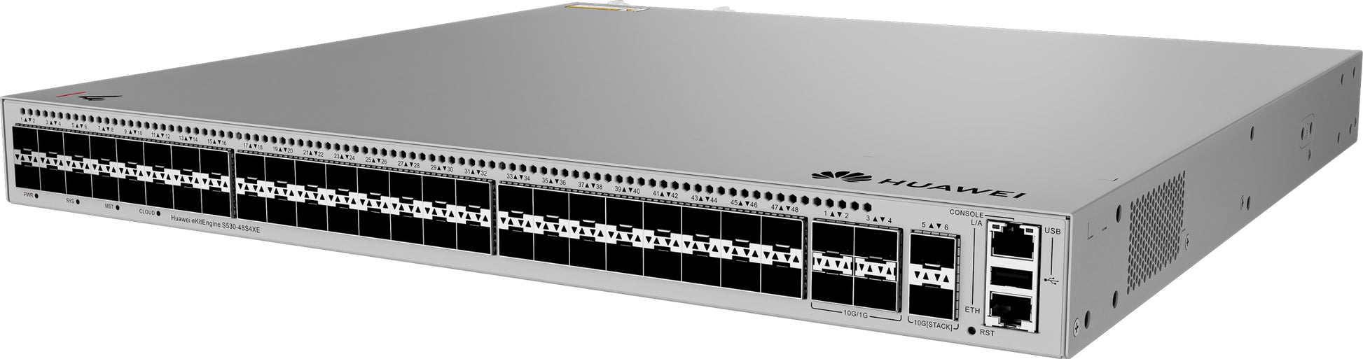 | Επιπρόσθετα | 48 x GE SFP ports 4 x 10 GE SFP+ ports 2 x 10 GEstack ports1+1 power supply backupForwarding performance:168 MppsSwitching capacity:224 Gbps |